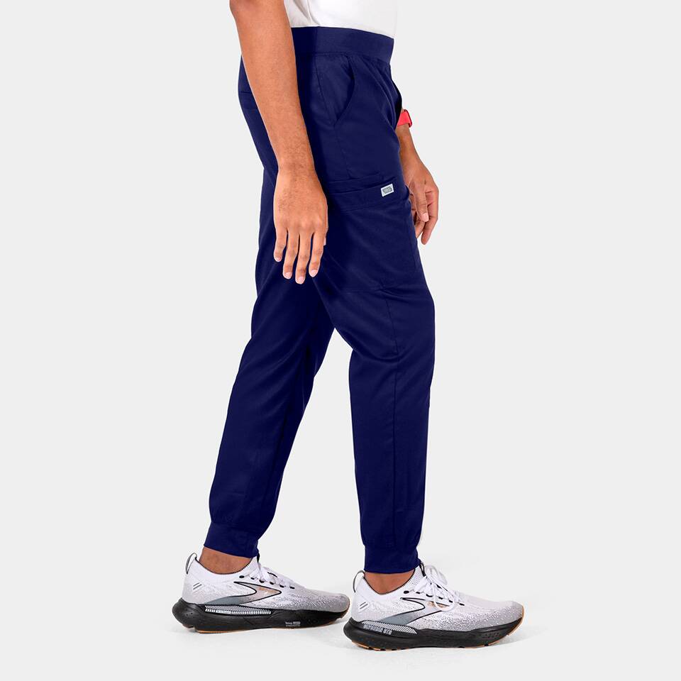Introducing the Mens Edge jogger scrub pant! With its yoga style knit waistband and leg cuff, inner drawstring, and multiple pockets including two cargo pockets with a cell pocket, these pants are both comfortable and functional. Get ready to take on your workday with ease.