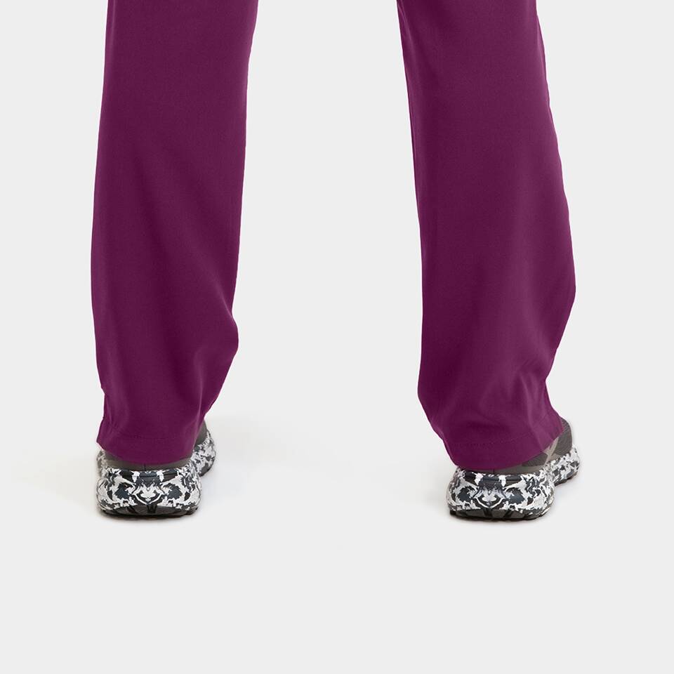Women’s full elastic waistband, Straight leg pant, Dyed-to-match drawstring, Two back patch pockets, Two front slant pockets, Side vents.